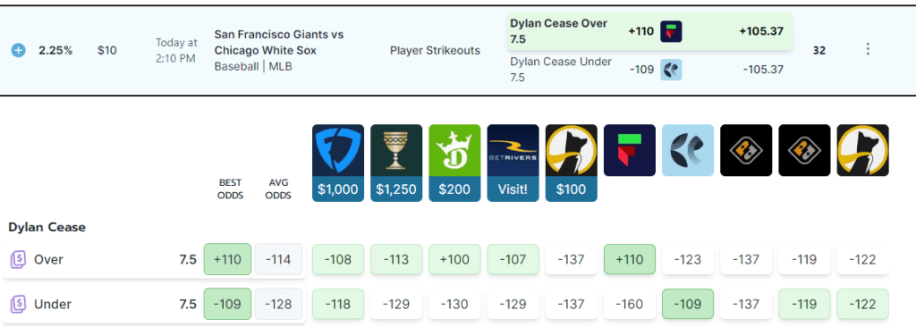 This play does not have super long odds, but it’s a plus odds play with other books posting minus odds. So even if books like FD and Caesars are favoring the under, they are allowing for the possibility of the over hitting by offering -108 & -113 odds.