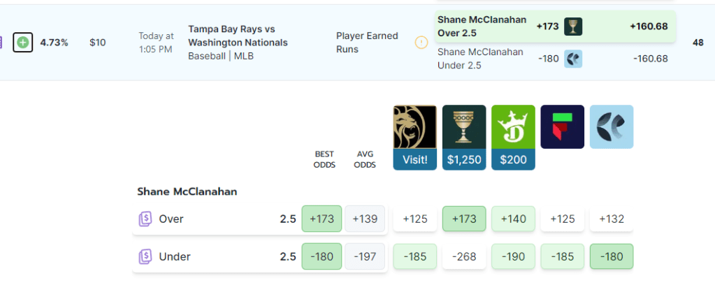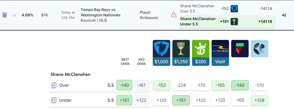 Today seems to be the day to fade McClanahan on Caesars, as they are offering his o2.5 ER, u5.5 K and o5.5 hits allowed at ridiculous edges.