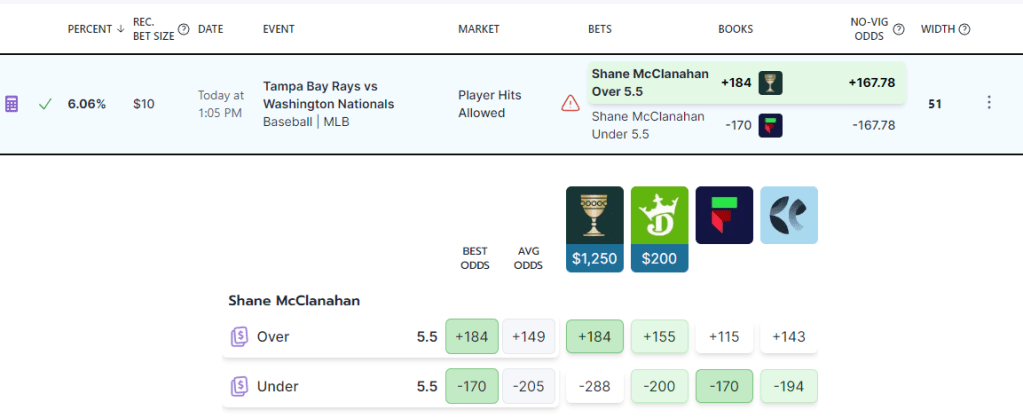 We went 2 for 3 in our first edition of +EV picks courtesy of OddsJam data. Let’s see if we can continue our run today with a glorious day baseball slate!